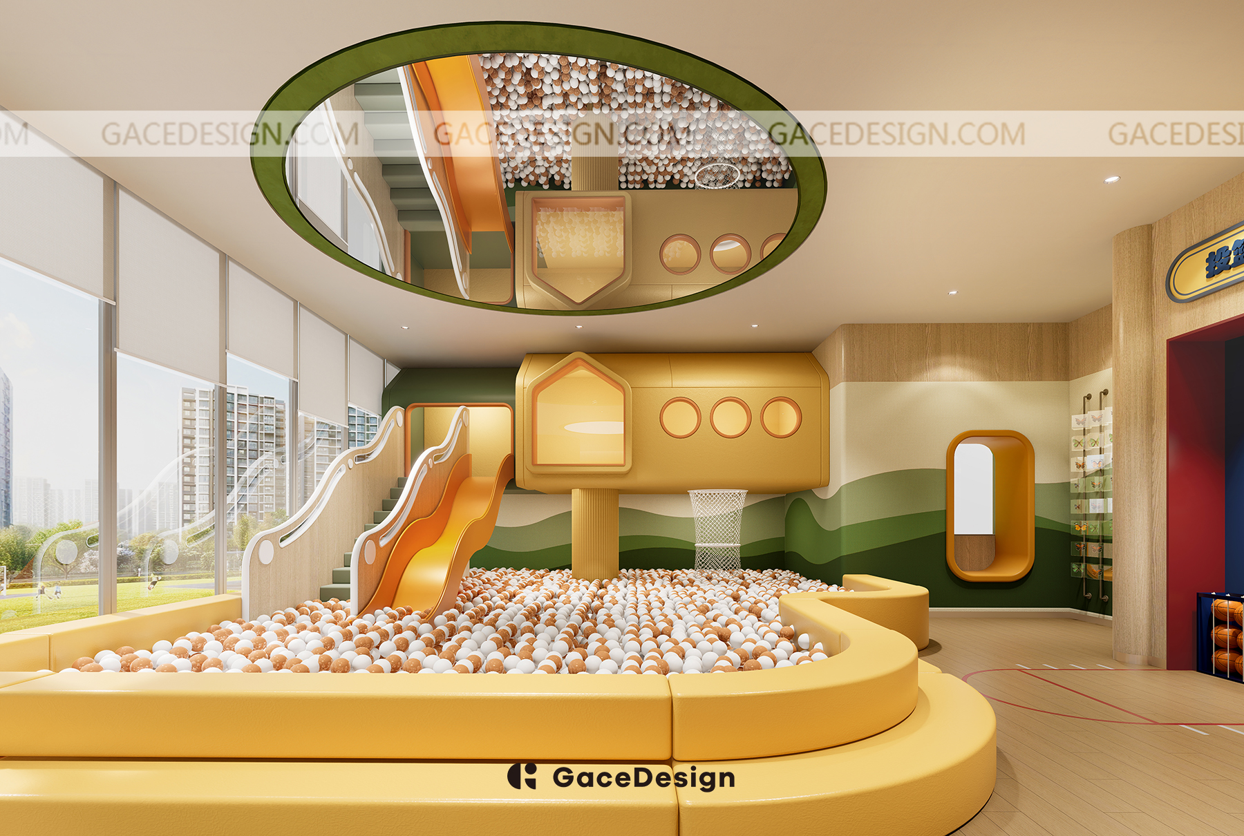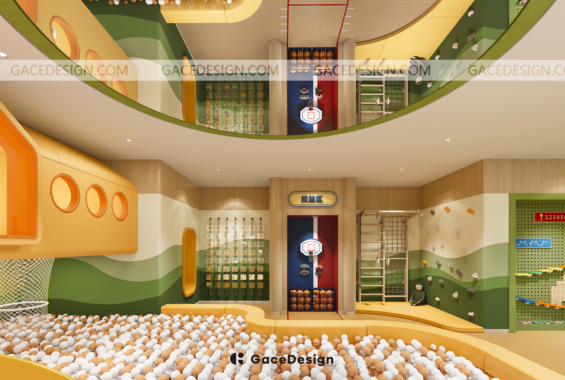 ?動態區域則充滿了各種充滿樂趣的設施,特別是為低齡兒童設計了幼童區。我們還設置了滑梯、球池和沙池區,孩子們可以在不同的區域里進行角色互動,釋放他們的精力。對于稍大一點的孩子,還有攀爬墻和籃球供他們挑戰身體協調性和體能