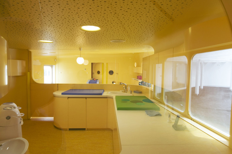 為了保證設施的安全,所以在內部配件的設計中,消除了所有的直角結構,并提供平滑彎曲的邊緣,即使連鋒利的邊緣也被倒圓。這些是該建筑的特點之一,外墻像波浪一樣進入了內部空間。