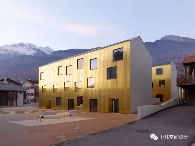 窗戶的排列方式充滿了趣味性,在滿足了空間要求的前提下,使立面動(dòng)感活潑。一些窗戶可以當(dāng)做凹窗供兒童使用。