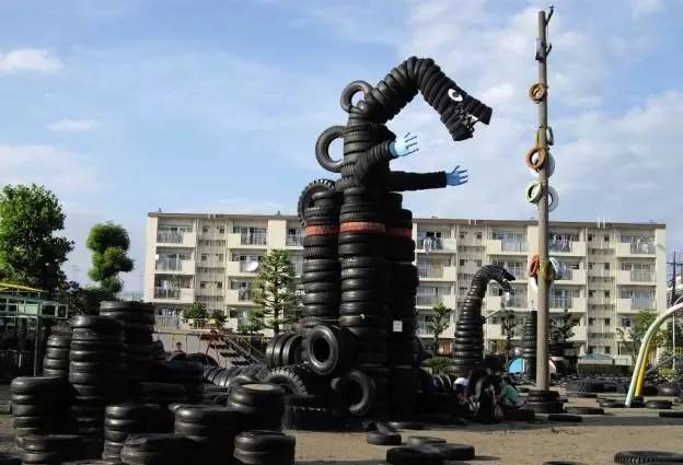 Nishi Rokugo游樂場(輪胎游樂場)的特色就是恐龍、怪物、橋、滑梯和秋千等等元素,這些元素都是采用輪胎構成,由成千上萬個汽車輪胎構成構成的游樂場具有非常特別的風格,而且在游樂場的周圍還散布著數量不一的輪胎,這些輪胎能夠供孩子和父母堆疊、滾動、跳躍和攀爬,能夠讓孩子和家長盡情地玩耍。