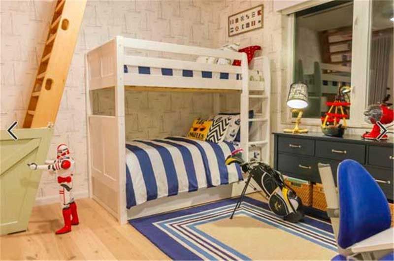 為了節省空間,大多麻麻會采用上下式。交錯式其實也是很不錯的選擇哦!空間感極強,等他們長成大寶,還可以睡前隨時聊聊天~